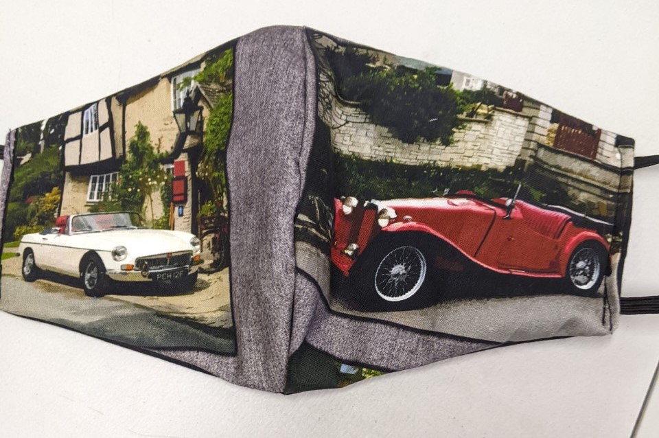 Classic MG Vintage Cars Face Masks - Hand made in our workshop, these are made from the highest grade tightly woven cotton used by quilters. They are cut, shaped & interlined with a fine muslin, adding an extra layer of protection. Made to W.H.O guidelines, these can offer up to 95% droplet protection.