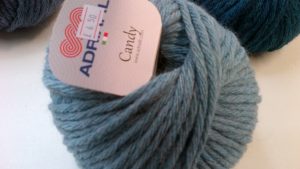 Check out our Winter Warmer extra chunky wools...This is Candy by Adriafil of Italy - a sumptuous extra chunky for 9mm pins. 45% wool 40% acrylic & 15% alpaca. 100g balls and 100m long. This is a rich icy petrol blue