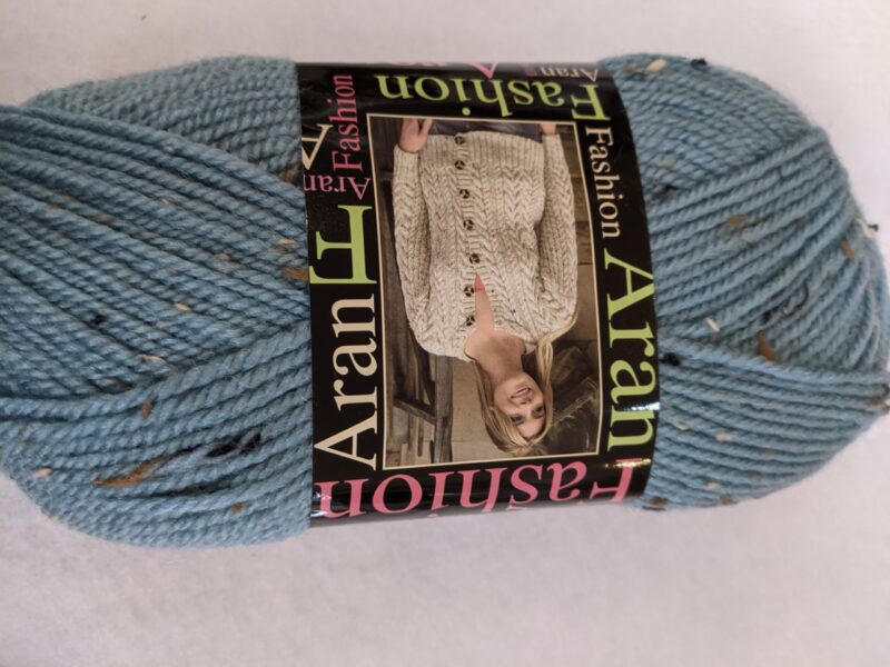 This is a traditional Aran 70% acrylic & 30 % wool. A great yarn to work with, approx 200m on a 100g ball. This is a lovely duck egg blue